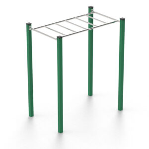 Materiales: Acero galvanizado y polietileno de alta densidad (HDPE), postes de tubo cuadrado 90×90 mm y barras de tubo redondo ø40 mm.